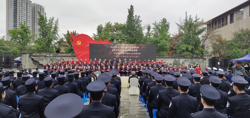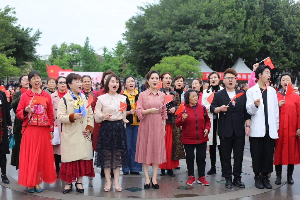 喜欢音乐的市民们,纷纷加入“爱国歌曲大家唱”,在德阳市持证街头艺人的带领下欢唱爱国歌曲。老中青少四代人组成的百人诵读团队,深情朗诵《我千万次呼唤您》,回顾党的百年奋斗征程。