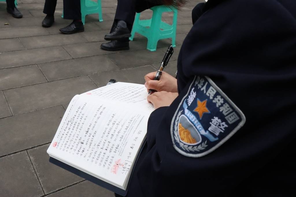 合江“老黄牛”宣讲团宣讲时,民警正在记笔记。合江公安供图