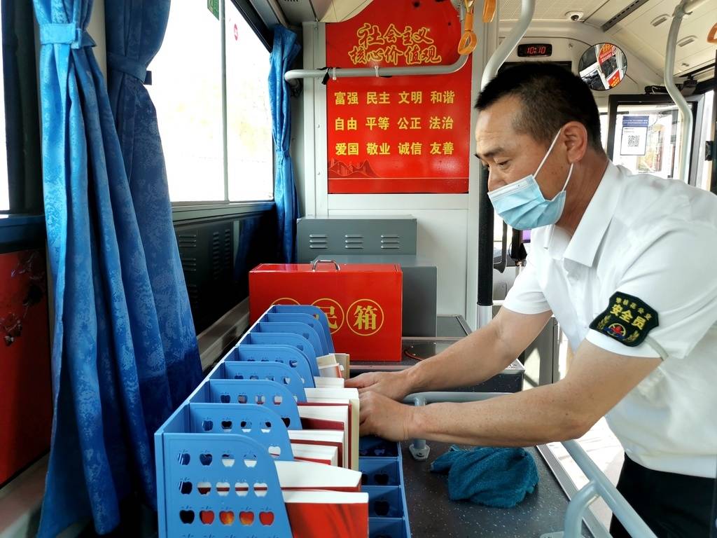 车厢内,红色元素随处可见,爱心座椅也换上了“红装”;两侧顶棚灯箱的“党史小课堂”,按照时间先后顺序,标记着中国共产党党史上的重要事件;驾驶室后方,则是专门为乘客开辟的“红色书角”,乘客王岭一上车就被吸引,随手从简易书架里抽出一本党史书籍,翻看起来,”平时上车大家都习惯‘刷’手机,十几分钟的时间学一学党史,肯定看不完,但是让我有兴趣下车之后继续去了解。”