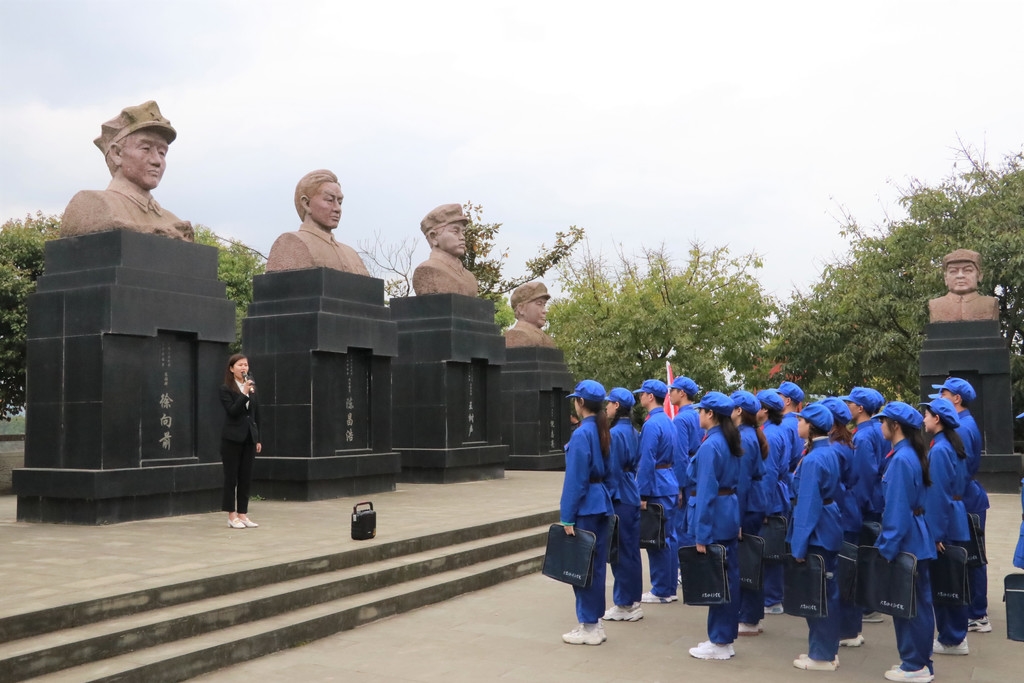用行走的汗水感受红色地标凝聚的温度,用行走的脚步丈量红军浴血奋战的革命历程,在一张张照片、一件件实物、一块块墓碑前,广大团员青年聆听着革命先辈的光辉事迹,触摸着红军精神的铿锵脉动,红色精神浸润无声。在党史讲解员的带领下,宣讲团成员怀着崇高的敬意瞻仰了烈士纪念碑、纪念墙,聆听红军后代守陵人的故事,学习《川陕忠魂铸丰碑》等红色事迹,共同追忆革命先烈的丰功伟绩。活动中,队员列队向革命烈士敬献花篮、默哀,重温入团誓词,表达了对革命英雄的崇高敬意。