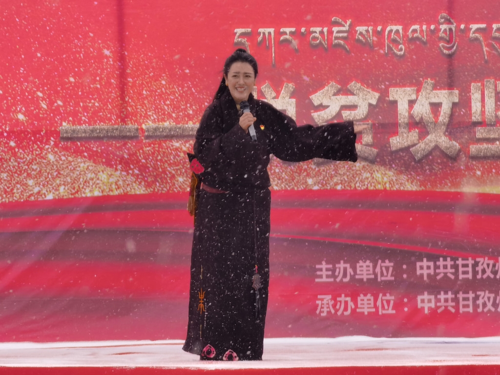 “讲好色达的脱贫攻坚故事,我既是参与者,也是奋斗者。5年来的日日夜夜,我们县乡村干部、第一书记、驻村队员用脚步丈量民情、用真情浸润民生、用心血凝聚民心,助推贫困村基础改善、产业发展、群众增收。” 4月14日上午,在甘孜州最大的扶贫移民安置小区——色达县安康社区广场,迎着飞舞的雪花,没有一人打伞,“奋斗的幸福·幸福的奋斗——脱贫攻坚甘孜故事”专场讲述报告会的讲述者用一句句饱含深情的质朴话语,讲述了脱贫攻坚一线的亲身经历和一个个感人至深的故事。现场不时响起雷鸣般的掌声,深情的讲述感染和鼓舞着每一个人。
