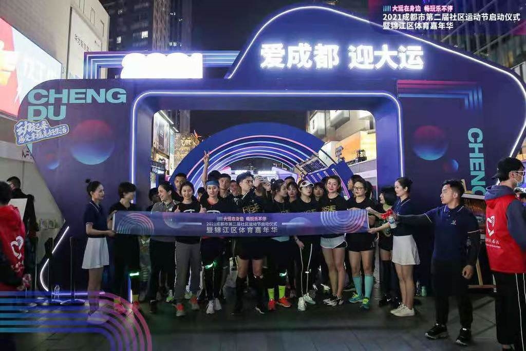 20时,成都市第二届社区运动节启动仪式迎来高潮。随着现场嘉宾蹬踩自行车发电点亮LED屏、春熙路网红曲面大屏、银石广场大屏,2021成都市第二届社区运动节正式拉开序幕。与此同时,奥运冠军、成都大运会形象大使冯喆鸣响起跑汽笛,锦江区体育嘉年华在荧光夜跑在发令声中正式启动,一群身着荧光服饰的成都跑者热情起跑,他们沿着锦江文化脉络一路奔跑,感受锦江文化魅力,同时也成为锦江边上一道闪亮、流动的风景。