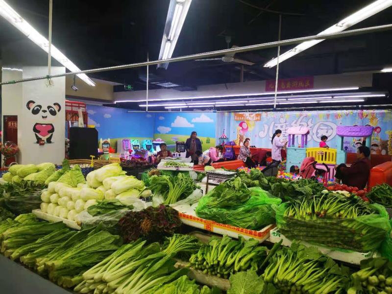 “通过前期调研,我们发现,周边小区带儿童买菜的人群较多。”益民供应链公司相关负责人介绍,为方便社区居民生活需要,此次改造在市场内创新增设了滑滑梯、摇摇椅、海洋球池等儿童游乐设施,并设立儿童游乐专区,供前来买菜的居民儿童免费游玩,让社区居民在买菜的同时也能解放双手,提升社区居民幸福感。
