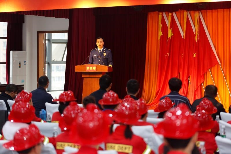 党史学习教育开展以来,成都市消防救援支队高新区大队积极从传承红色基因和提升消防安全意识能力等方面主动作为,当天的训练营活动以消防安全主题动画片拉开序幕,通过青少年学生喜闻乐见的方式引导学生加强消防安全意识,增强自防自救能力。随后,少年消防团学生代表上台发起倡议,倡导大家自觉遵守消防法律法规、增强消防安全意识、学习掌握火险自救的基本常识等。