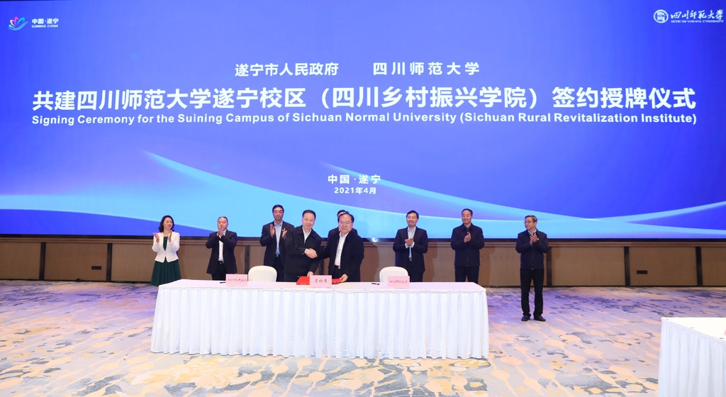 4月16日下午,遂宁市人民政府与四川师范大学共建四川师范大学遂宁校区(四川乡村振兴学院)签约授牌仪式举行。