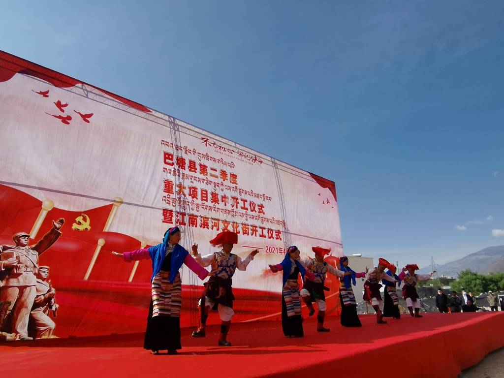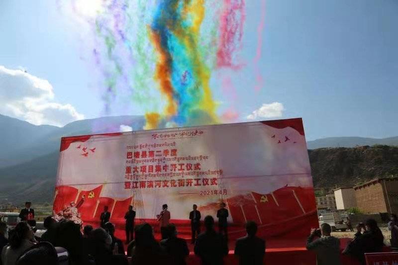 4月17日,甘孜州巴塘县2021年第二季度重大项目集中开工仪式暨体育馆、江南滨河文化街、市政桥梁新(改)建工程项目开工仪式在滨河路建设现场举行。