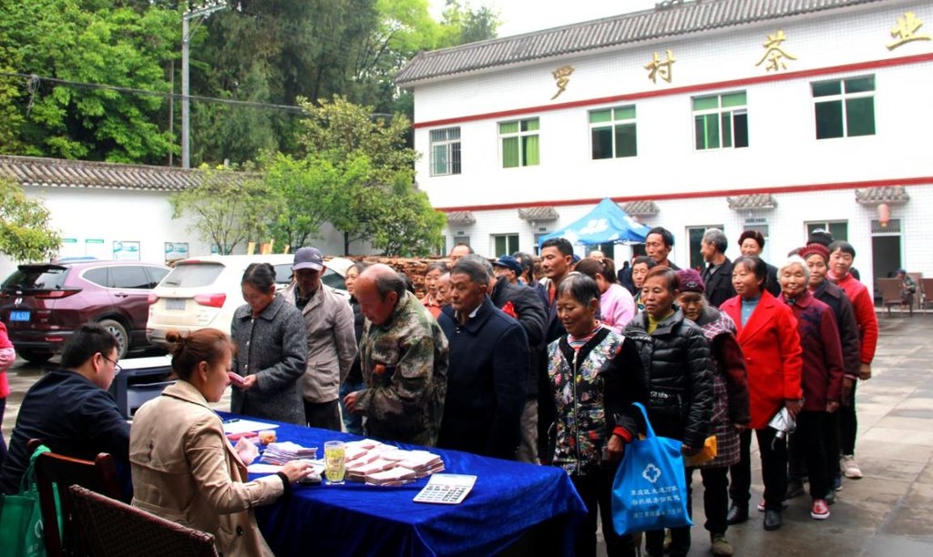 4月19日上午,巴中市通江县烟溪镇的罗村茶业有限责任公司厂区内一片欢声笑语,该镇的数百名茶农正排队领钱——当天,公司以现金形式发放近一个月的茶叶鲜叶收购款。