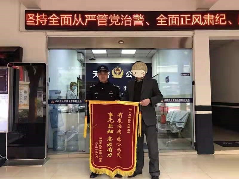 在治安支队出入境管理大队,群众刘某送来锦旗,对民警在办理护照过程中为他提供的帮助表示感谢。原来在此之前,刘某拿着过期作废的旧护照来到天府公安出入境接待大厅,向值班民警田国华咨询:接到公司委派,需出国处理紧急商务,能不能申请护照,该怎么申请?