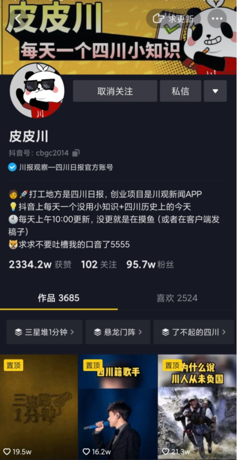 如果你也玩抖音,还可以在关注抖音号“皮皮川”,天天跟皮哥互动哟