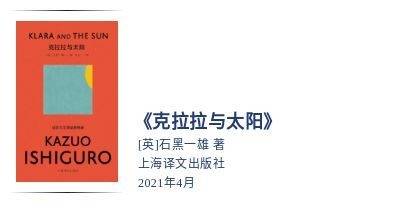 [英]石黑一雄:《克拉拉与太阳》(上海译文出版社)