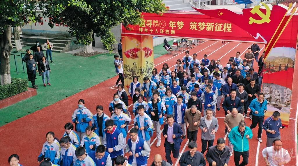 为献礼建党100周年,成都市中和中学“师生千人环校跑”活动于2021年4月19日下午正式开跑。该校1000多名师生共赴一场以“追寻百年路筑梦新征程”为主题的红色奔跑之约。