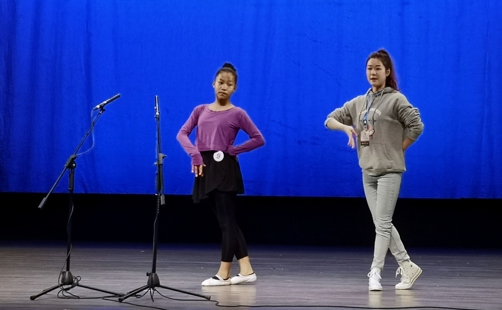 在初试现场,孩子们一一登台亮相,以自我介绍、唱歌、跳舞、朗诵来展示才艺,并通过形体模仿,念白模仿,音域、音准、音高等环节考核基本素质,台下9名评委进行综合评分。