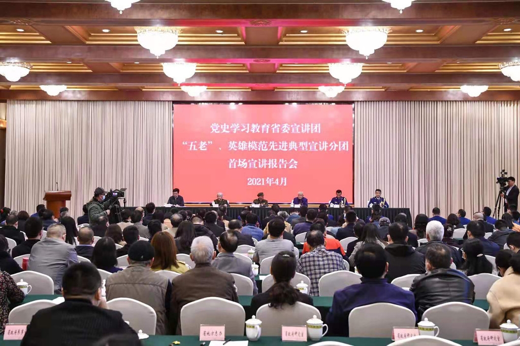 4月19日下午,党史学习教育省委宣讲团“五老”、英雄模范先进典型宣讲分团在金牛宾馆举行首场宣讲报告会。