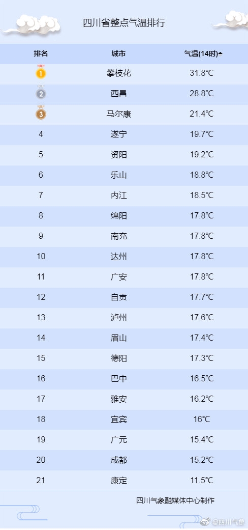 下面送上四川省气象台今天早上新鲜出炉的天气预报: