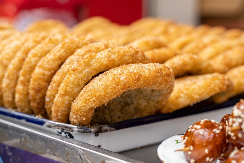 两元一个,性价比颇高的油炸粑是内江人解馋的必选项之一,其中以板板桥油炸粑最为正宗。经过油炸后,酥脆的金黄的糯米外皮混合着咸香的绿豆馅料软糯的口感,几口下肚,满足感油然而生。