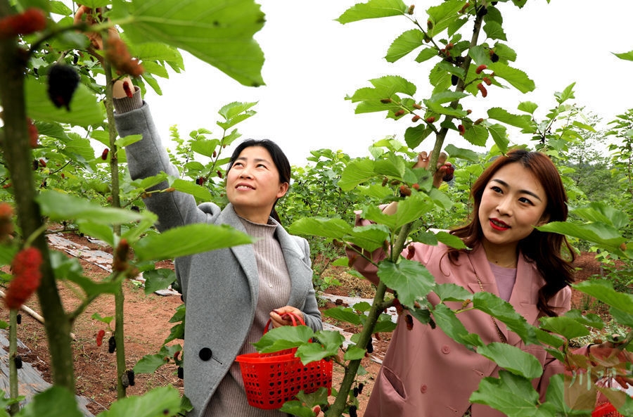 时下,正是桑葚成熟采摘的时节。连日来,在仁寿县钟祥镇中华村九店垭家庭农场的520亩桑园里,熟透了的桑葚果挂满枝头、果香四溢,不仅带动当地村民就地务工,还吸引众多游客前来体验采摘桑葚乐趣。近年来,该县在推进休闲观光农业和乡村旅游融合发展中, 因地制宜打造以生态采摘、旅游观光为特色的休闲观光农业,促进农民增收和乡村振兴。