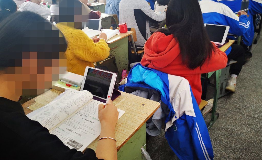 正在做练习题的高二学生,面前是平板电脑 蒋诗逸 摄影