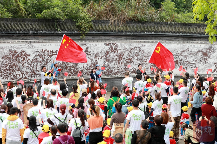 泸州市纳溪区幼儿园的师生家长参观《铁血护国》浮雕。