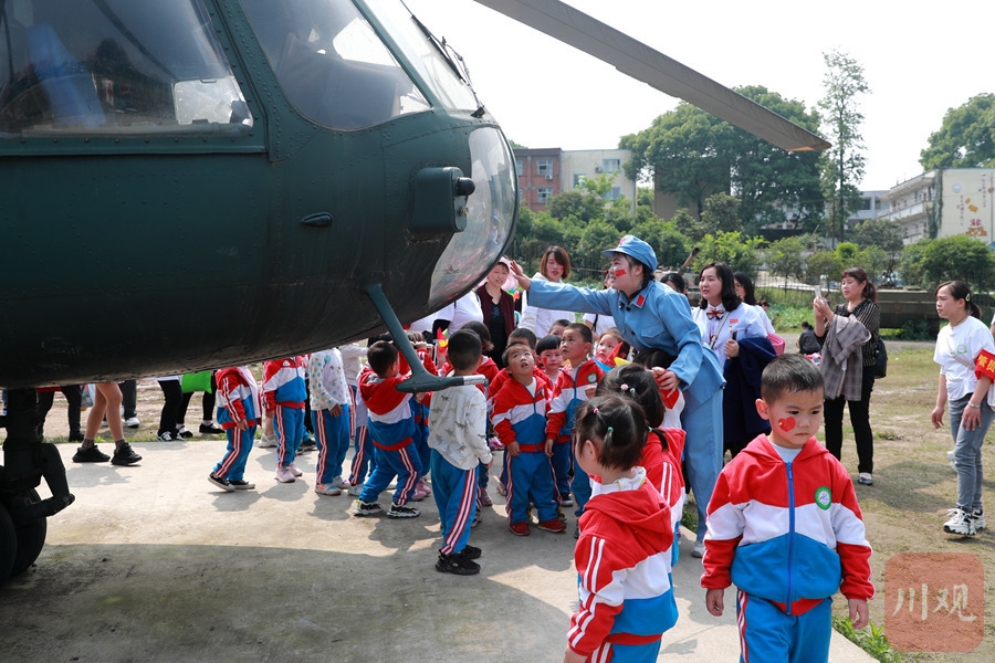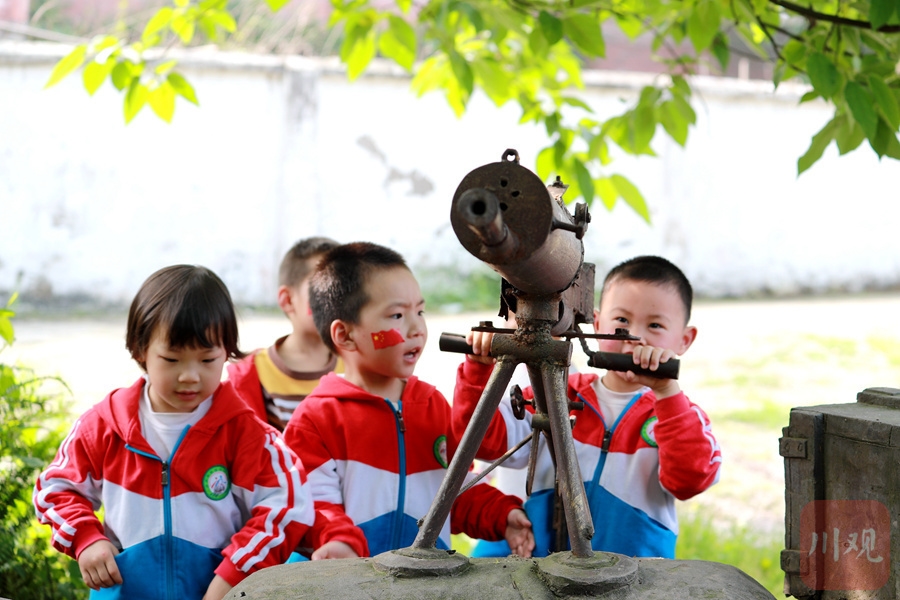 泸州市纳溪区幼儿园的小朋友体验战斗设备。