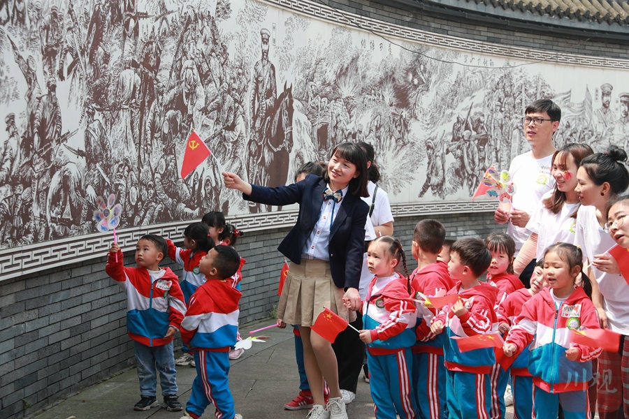 2021年4月21日,四川省泸州市纳溪区幼儿园举行“童心向党 放飞梦想”庆祝建党100周年亲子活动,300余名师生和家长来到当地的护国公园开展唱红色歌曲、听红色故事、参观国防教育基地等丰富多彩的活动,学习党史国史和家乡史,进一步培育孩子们的爱党爱国情怀。