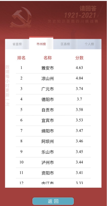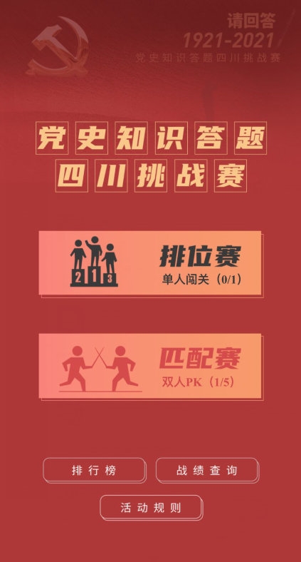 为助推全省上下开展好党史学习教育,由省直机关工委、省委党史研究室、四川日报社联合举办的“请回答1921-2021”——党史知识答题四川挑战赛已于本月6日启动,目前已吸引13万多人参与答题,答题人次超过175万。