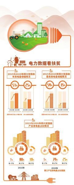 分产业来看,从2015年到2020年,全省贫困县的第三产业用电占比从19%增长至25%,比重持续上升,产业结构得到明显优化。