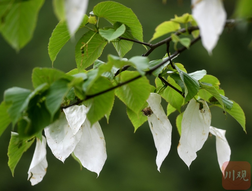 鸽子花放“鸽” 珙桐树下大熊猫欢乐游。