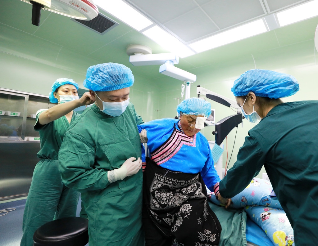 “婆婆,眼睛往最亮的地方看。”“点了麻药,等会儿有啥不舒服你就说哈。”4月22日上午9时,在阿坝州理县人民医院手术室,遂宁市中心医院眼科中心主任医师杨旭和主管护师刘全坤,在理县人民医院配合下,正在为患者进行白内障手术。