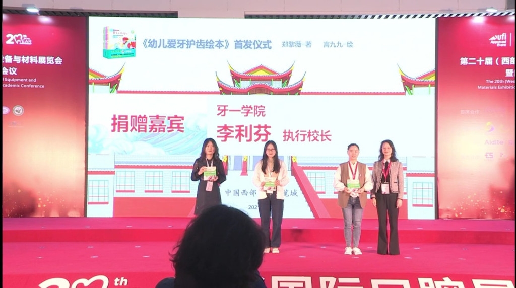 4月22日,四川人民出版社《幼儿爱牙护齿绘本》新书首发式,于2021成都西部国际口腔展期间在中国西部国际博览城举行。主创成员除了分享创作、出版背后趣事之外,作者郑黎薇教授还向华西幼儿园等三家幼儿园捐赠上百套该绘本。