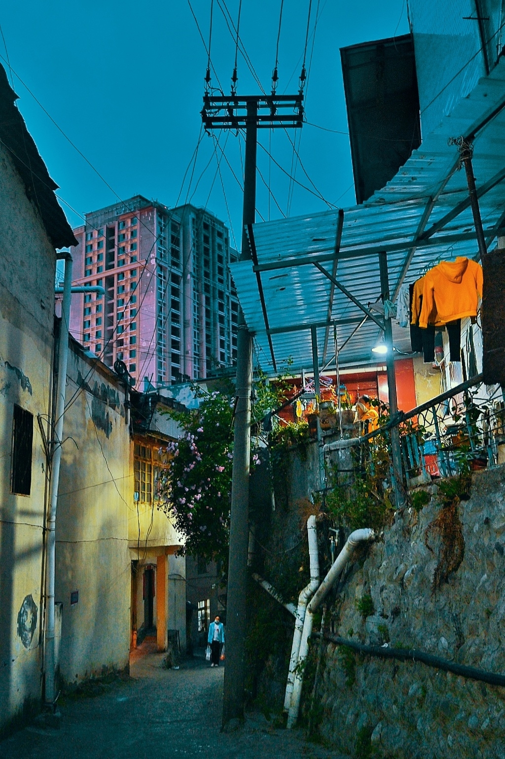4月22日,微风的夜晚,汶川县城华灯初上,“红军桥”旁镭射光闪耀,古羌城内游人如织,感恩广场响起欢乐的锅庄,较场街卖汶川樱桃的山民希望能有最后的买主。在一条不起眼的小巷里,光影下盛开的蔷薇花,小巷里窗户透出的桔色光,白墙下的过客,蓝调的影像画面让整个傍晚的汶川,既唯美又充满诗意。