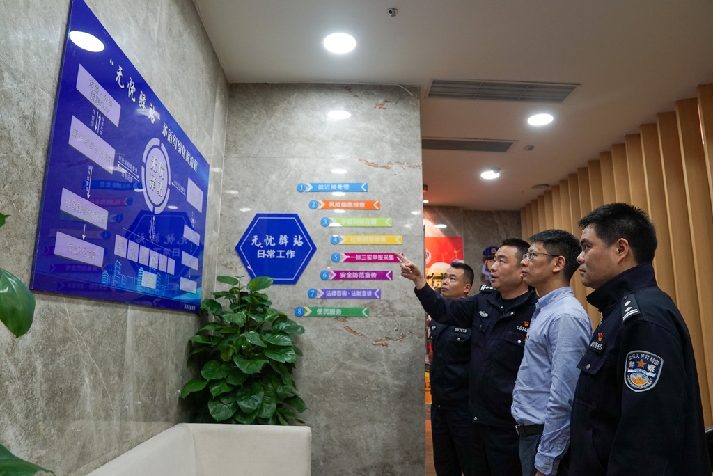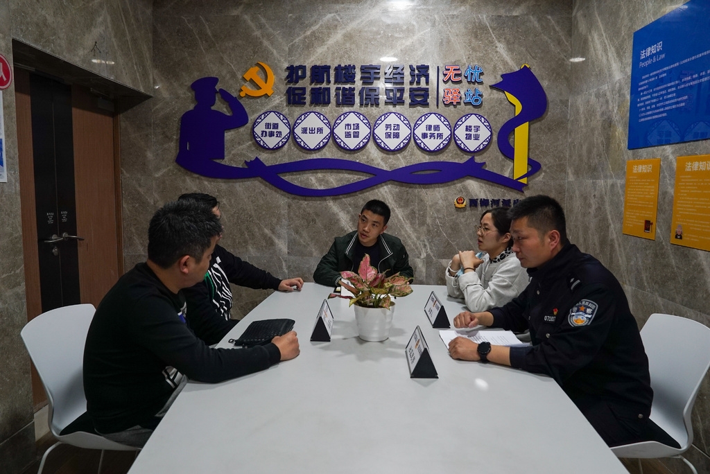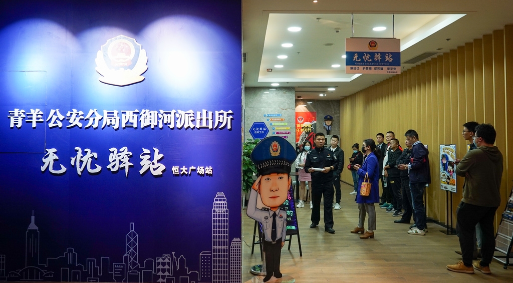 据青羊公安分局西御河派出所所长马树辰介绍“无忧驿站”把报警、求助、咨询、纠纷处理等警务,把司法、市场监督、劳动仲裁、政务服务送到企业的门口、群众身边,让他们足不出户就能享受到驻点相关工作人员“面对面”的服务。试点成功后,还将在雄飞中心、鼓楼国际设立“无忧驿站”警务室。