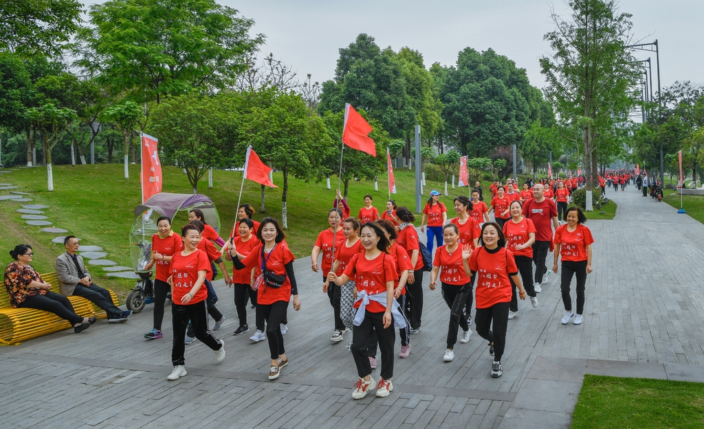 世界读书日,各类阅读活动花式来袭。在邛崃,一场用“体育+阅读+公益”的新鲜组合方式,带读者体验不一样的世界读书日。4月23日,邛崃市2021年“一本图书的行走,红色精神的传承”公益徒步活动暨“爱成都 迎大运”社区运动节在邛崃市河滨广场启动。300名公益传递者在邛崃城市中漫步奔跑,开启一场关于图书的爱心公益徒步之旅。