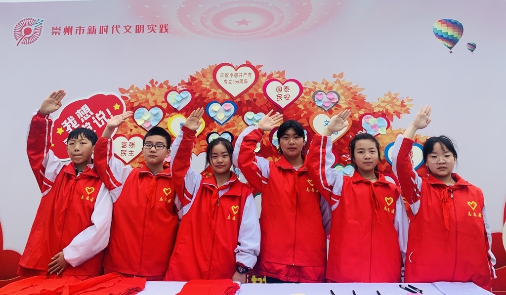 启动仪式上,崇州市教育局代表发布了2021年崇州市新时代文明实践基地·乡村学校少年宫志愿服务菜单。主要包括六个文明实践志愿活动,分别是红领巾·讲党史志愿活动、红领巾·倡文明志愿活动、红领巾·传非遗志愿活动、红领巾·话科普志愿活动、红领巾·扬家风志愿活动、红领巾·爱劳动志愿活动。服务菜单发布完毕,崇州市乡村学校少年宫红领巾志愿者代表走上台,向全市的红领巾们发出文明实践志愿倡议。倡导全市红领巾们积极参与红领巾志愿服务活动,大力弘扬奉献、友爱、互助、进步的志愿精神,争做文明实践先行者,厚植爱党爱国爱社会主义情怀,努力成长为中国特色社会主义事业建设者和接班人。