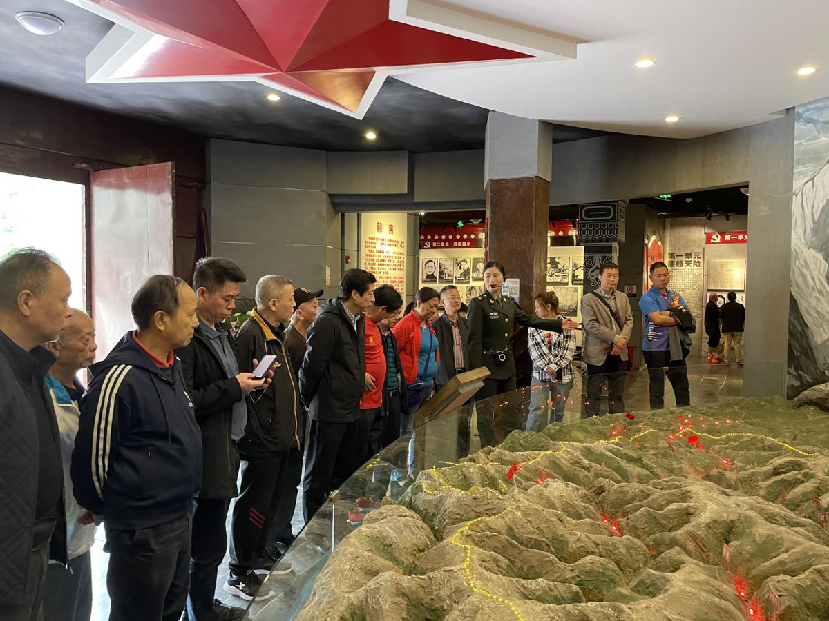 随后,全体人员来到红军长征翻越夹金山纪念馆广场。位于宝兴县境内的夹金山,是红军长征翻越的第一座大雪山,这一气壮山河的壮举和在宝兴惊心动魄的战斗历程,是红军长征史上浓墨重彩的篇章。在纪念馆内,高亚翔动情地为全体人员讲述了红军三越夹金山的历史。