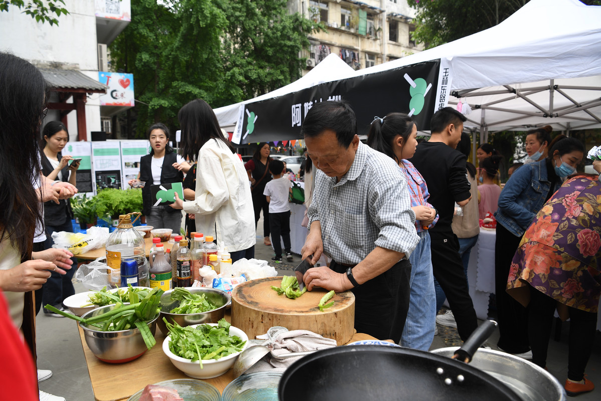 4月24日,成都市武侯区玉林街道玉林东路社区举行“玉东商居联动邻里文化节”,百名社区群众参与活动。