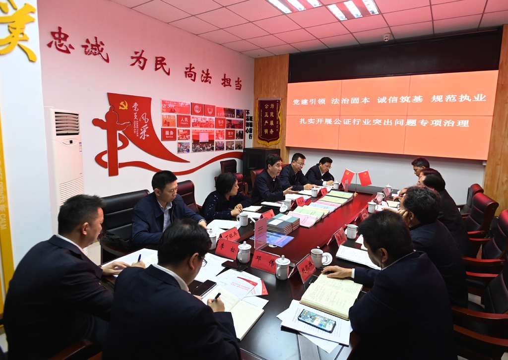 督导调研组先后走访了四川汇韬律师事务所、成都市成华公证处等地,详细了解专项治理工作进展情况,检查工作台账记录和学习笔记资料,抽问应知应会知识。“自查自核情况如何,是否进行了谈心谈话,主要存在哪些问题?”“有时我们要求群众提供的证明材料比较繁杂……”省司法厅党委书记、厅长刘志诚与成华公证处主任王小风仔细交流,对专项治理工作中的薄弱环节提出指导意见。