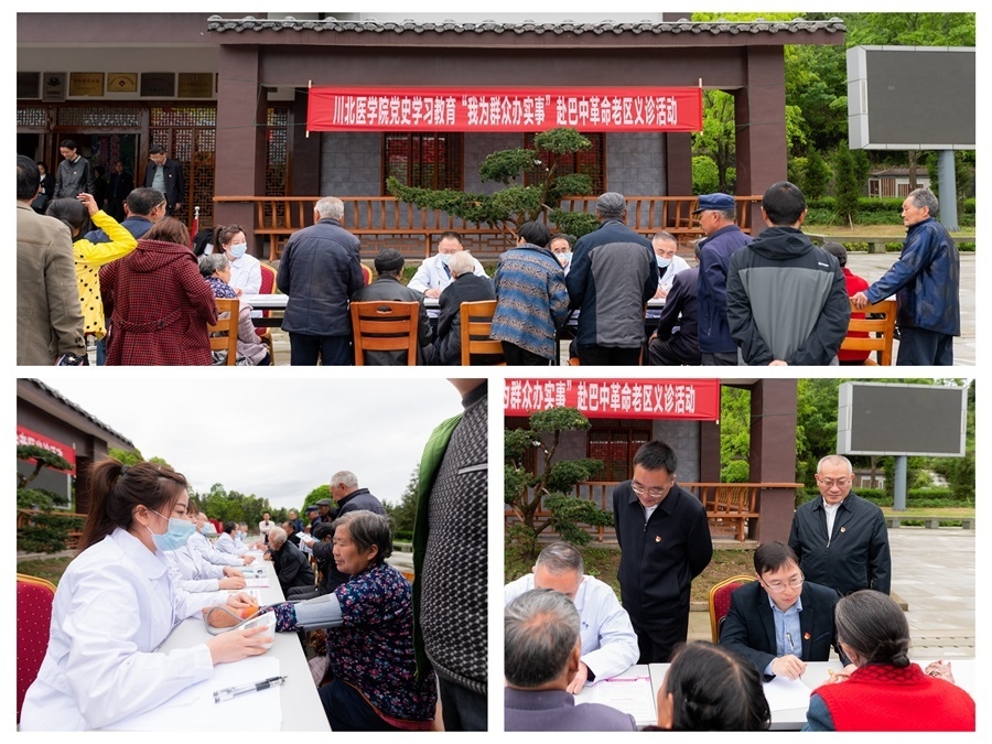 4月24日的培训课堂设在巴中市通江县王坪村的川陕革命根据地红军烈士陵园在讲解员的带领下,参训干部瞻仰了红四方面军英勇烈士纪念碑、敬献花篮,并重温了入党誓词;在随后的访谈教学环节,红军后代守陵老人讲述了红军及一代代守陵人的感人故事;大巴山干部学院的老师又在现场为培训班学员们先后上了《缅怀先烈继往开来》《川陕忠魂铸丰碑》两堂微党课;在陵园游客中心,作为医学高校的老师,部分参训干部还为闻讯赶来的当地百姓开展了党史学习教育“我为群众办实事”义诊活动。