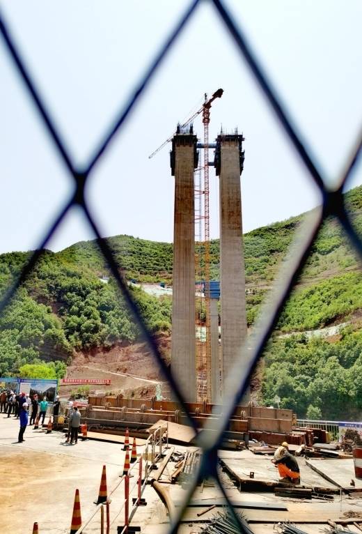 来到昭觉县境内的子莫格尼大桥,3座主墩高高耸立,高度已经超过100米,十多根基柱高低不一,鳞次栉比,初步雏形已现。