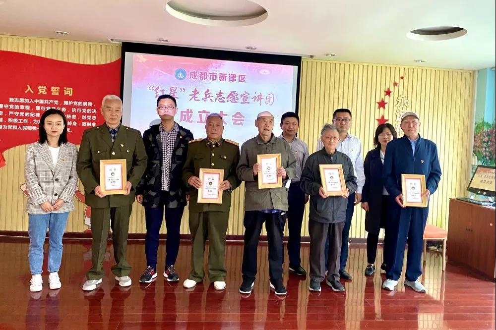 4月26日,成都市新津区举行“红星”老兵志愿宣讲团成立大会,30余位老兵志愿成为宣讲员,平均年龄超60岁。