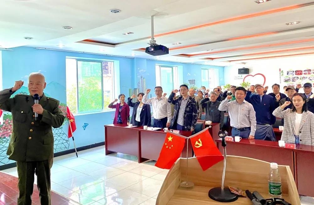 曾经随部队转战犍为、乐山、眉山、新津等地,先后参加了解放大西南成都战役、解放西藏战斗,老兵邓必成代表30多位志愿宣讲员作表态发言。随后,全体人员重温入党誓词。