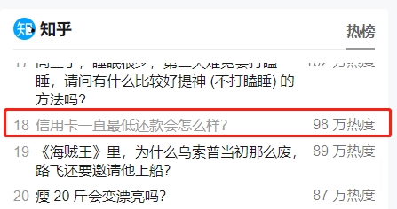 4月27日,“信用卡一直最低还款会怎样”的问题还冲上了知乎热搜榜。