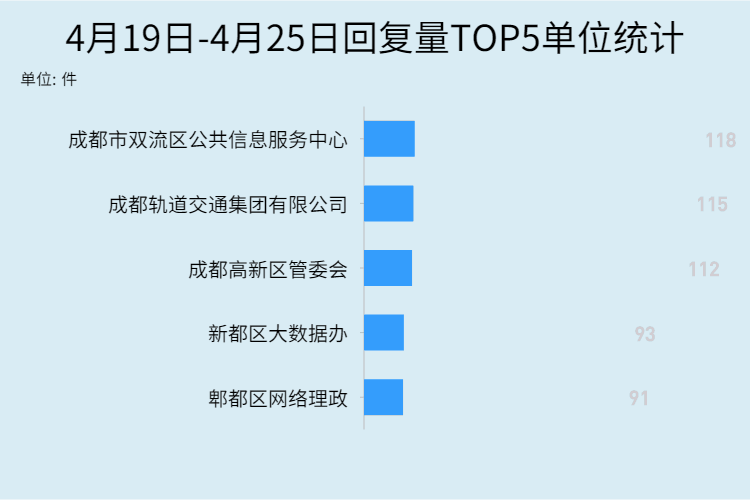 从具体接件转办单位来看,全川转办回复量排名上前五的单位分别为: