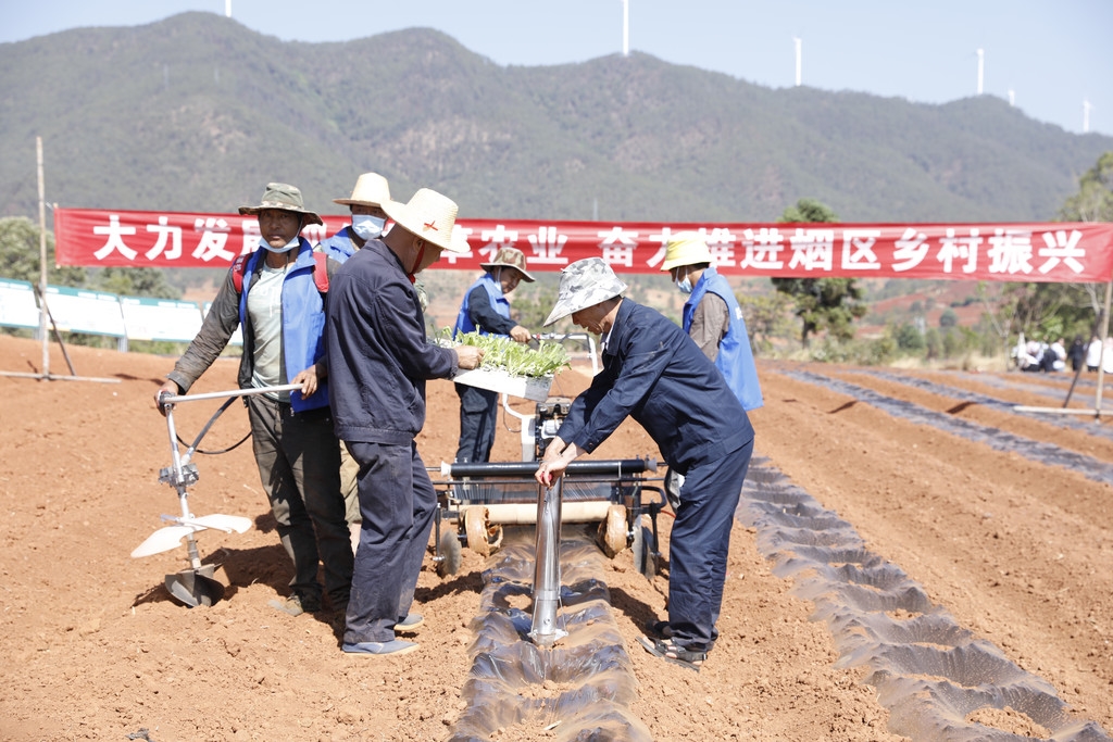 小型微耕机、起垄机、打塘机、覆膜机、培土机……这不是农机展,而是近日攀枝花市2021年烤烟移栽现场会暨烟叶工作推进会的现场一“景”,这标志着攀枝花市全年烤烟生产在仁和区大龙潭乡按下“启动键”。