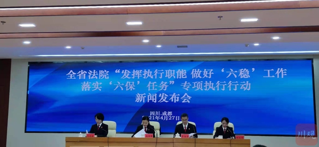 4月27日,记者从四川高级人民法院开展“发挥执行职能、做好‘六稳’工作落实‘六保’任务”专项执行行动的新闻发布会上获悉,在2020年9月下旬至2021年春节前“发挥执行职能、做好‘六稳’工作落实‘六保’任务”专项执行行动期间,四川全省法院终本合格率、执行信访办结率连续两年保持100%,排全国第1位;执行案件结案率98.30%,排全国第4位,较2019年提升4位;有财产可供执行案件法定期限内执结率99.65%,排全国第6位,较2019年提升1位。