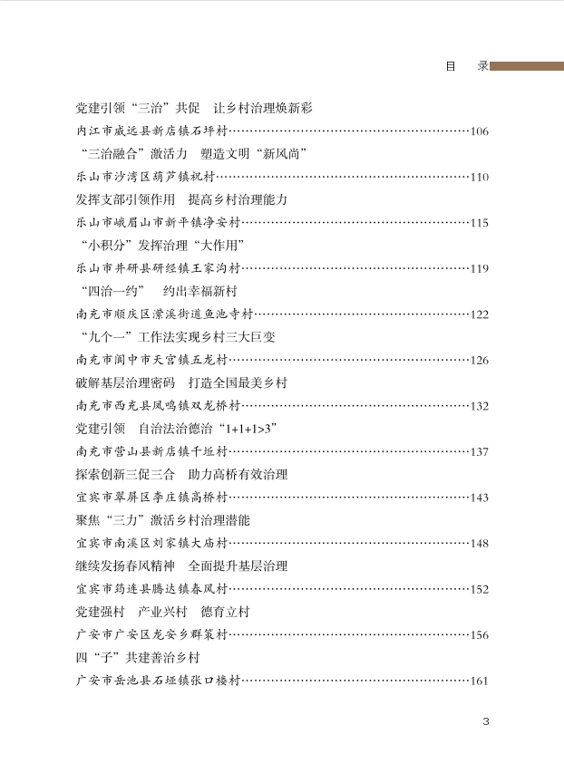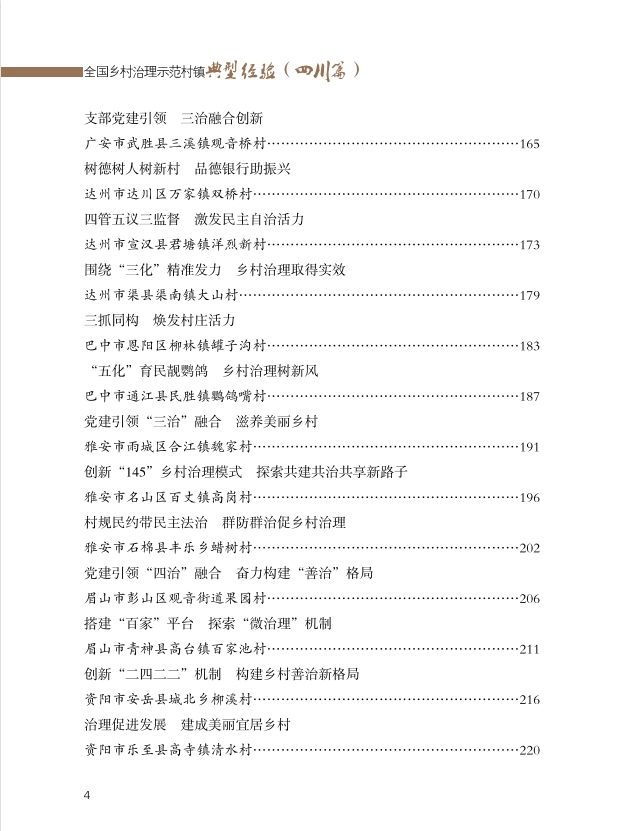 近日,四川省农业农村厅发布《全国乡村治理示范村镇典型经验(四川篇)》,以总结各地乡村治理的典型性、创新性和可行性经验,为全省乃至全国其他乡镇、村的基层治理提供借鉴和参考。