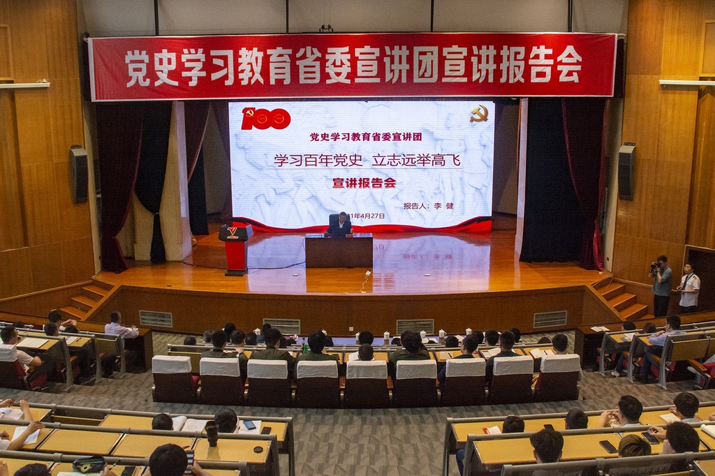 报告会上,李健教授紧紧围绕学习领会习近平总书记关于党的历史的重要论述,以“学习百年党史 立志远举高飞”为题,从“为什么学”“如何学”“学什么”三方面进行宣讲,全面讲述中国共产党百年奋斗的光辉历程和历史贡献、理论成果,对增强“四个意识”、坚定“四个自信”、做到“两个维护”等方面进行了系统解读。