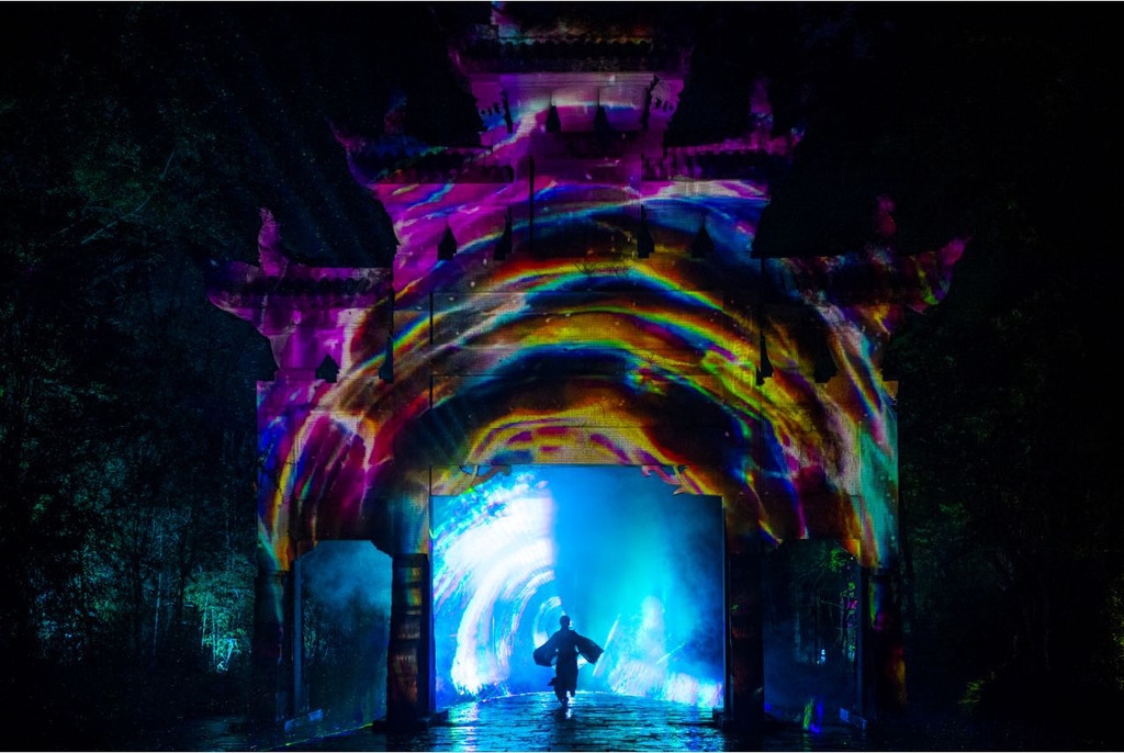 《剑门长歌》项目位于剑门关景区内,由剑门关华侨城投资8800万元,历时2年多时间精心打造,以穿越剑门蜀道千年浩瀚历史为主线,利用千年蜀道的雄奇天险,以10000平方米天然崖壁为幕、星空为景,深入挖掘活化蜀道、诗词、民俗等历史文化,充分利用景区内建筑、岩体、树木等载体,融合全息投影、灯光秀演、真人演艺、声光互动等内容,让游客在两个多小时内穿越2400年的剑门蜀道风云,体验1公里的极致沉浸,为游客带来一场全新的可视、可听、可互动等多重感官体验。