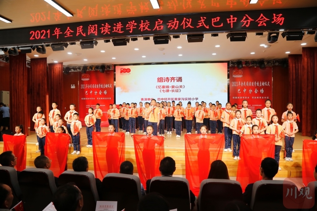 4月27日,由四川省教育厅、四川省新闻出版局主办的2021年全民阅读进学校启动仪式在巴中分会场同步举行,全市部分学校校长、师生代表等300余人参加了启动仪式。作为直播互动分会场之一,巴中通过线上线下联动的方式,同步启动全民阅读进学校——“校园阅读学党史,思政教育走长征”主题活动。