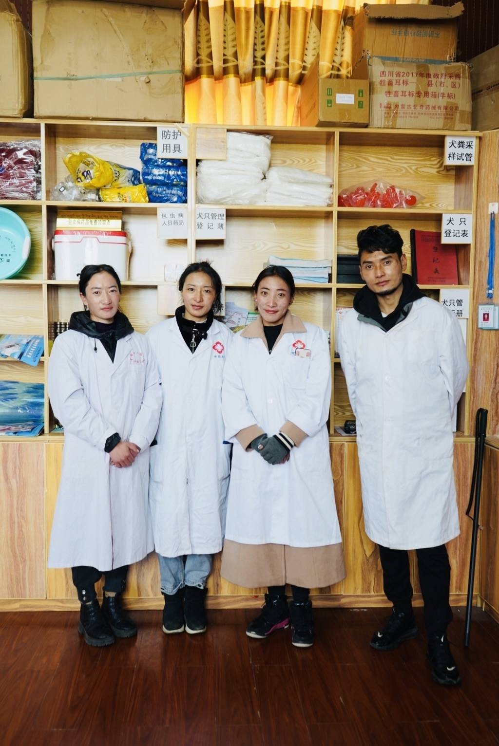 德荣玛乡4个村,有4名汪星人驱虫员,均为90后,最小的1999年。德荣玛乡包虫病防治办公室供图