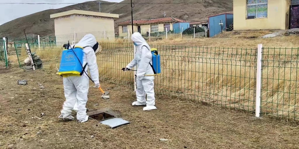 驱虫员正在对犬粪进行无害化处理。德荣玛乡包虫病防治办公室供图
